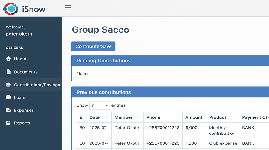 Preg-Tech's iSnow software is a revolutionary solution that provides all the features required to manage Group Investment Ventures and Savings. The solution can also be adopted to manage SACCO operations where members' savings contributions can be tracked and managed. The web-based platform has been found to be a perfect control and accountability tool.
